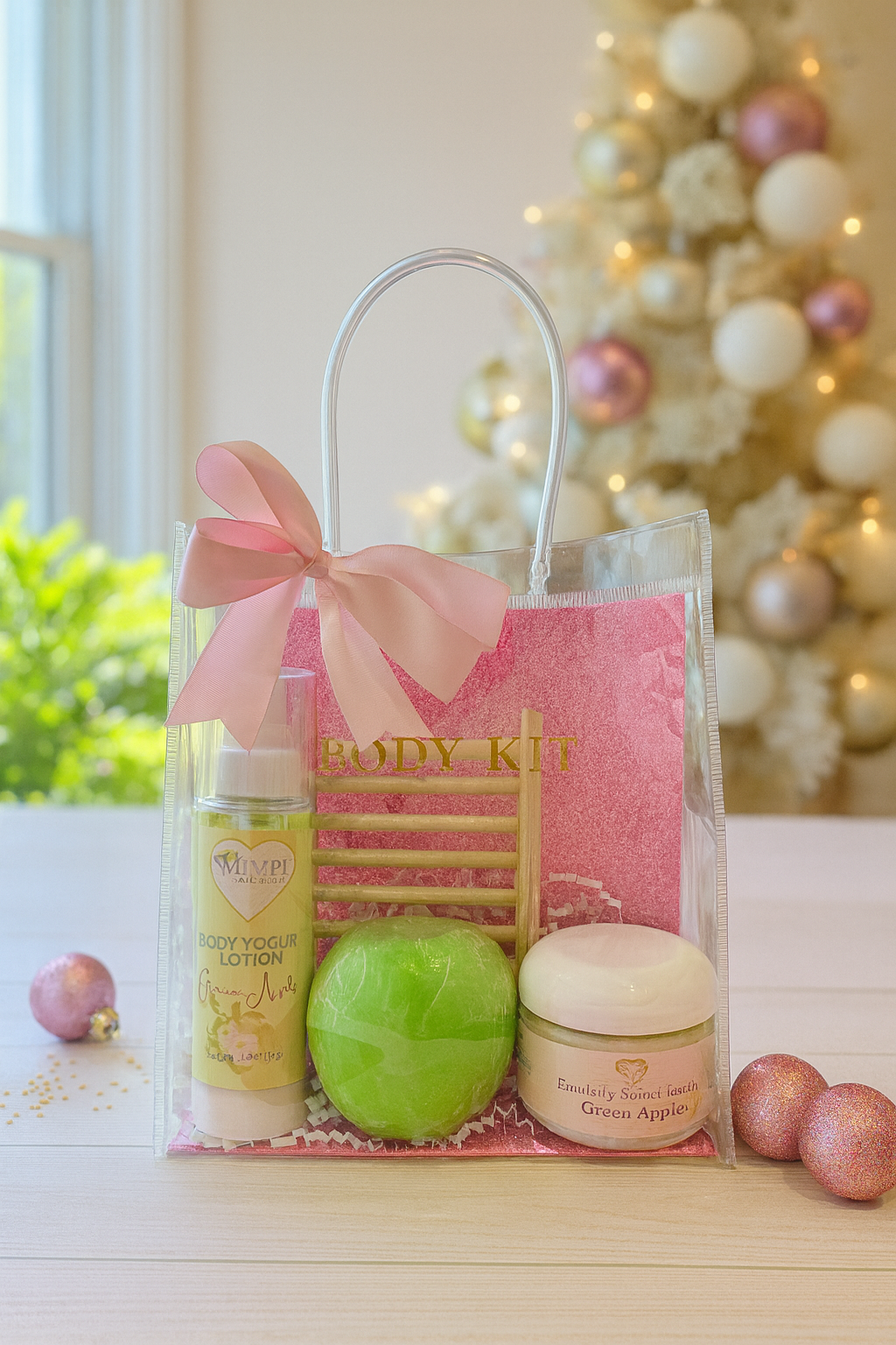 Disfruta una experiencia corporal completa con nuestro Body Kit Green Apple, una combinación deliciosa que deja tu piel suave, hidratada y con un aroma fresco a manzana verde. Este kit incluye exfoliación, limpieza profunda y una hidratación ligera ideal para uso diario.